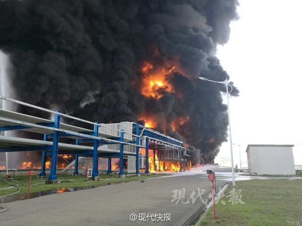 江蘇一危化品倉儲公司起火 濃煙如蘑菇云