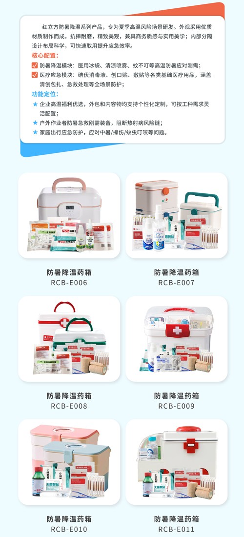 紅立方防暑降溫應急包,集實用性與關懷性于一體,是企業、工地、學校等在夏季保障人員健康安全的得力助手。在這個炎熱的夏天,讓我們用紅立方防暑降溫應急包為員工、工人們和師生們送去一份清涼、一份關愛,共同度過一個健康、安全、舒適的夏季!