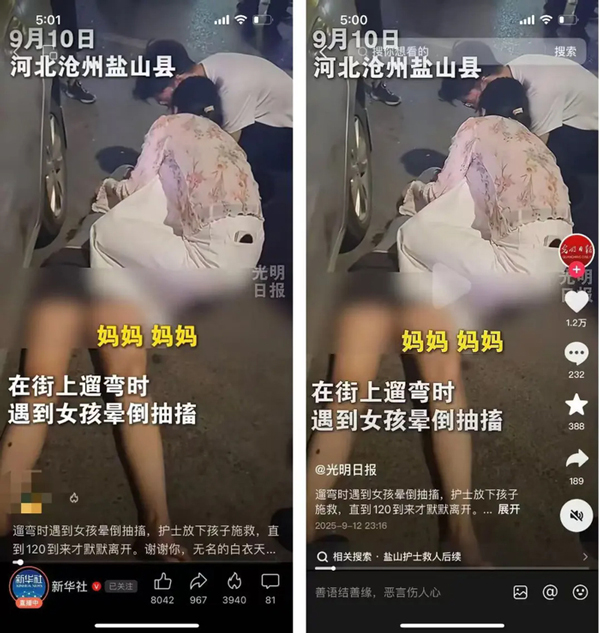 當(dāng)河北鹽山縣千童大街傳來呼救聲,一名女子突然倒地,情況危急。鹽山縣人民醫(yī)院護(hù)士霍平,當(dāng)時正抱著兩歲女兒與家人散步,聽到呼救后,她毫不猶豫沖向現(xiàn)場。