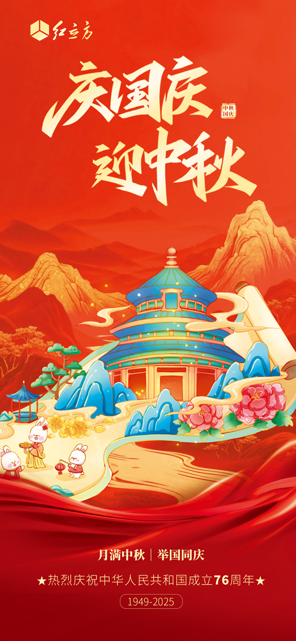 當國慶的華燈初上,中秋的明月也悄然升起,家國同慶,雙節相遇,紅立方送上最誠摯的祝福。