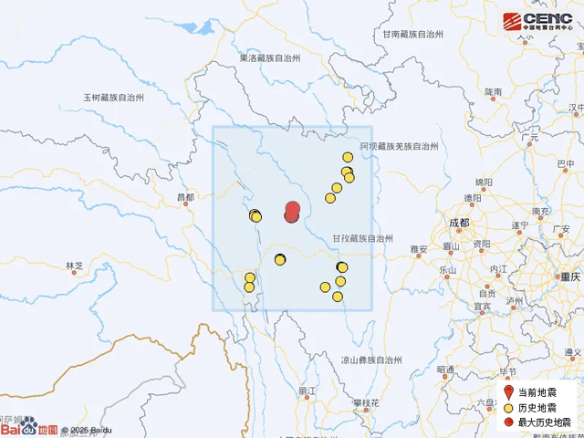 歷史地震:根據中國地震臺網速報目錄,震中周邊200公里內近5年來發生3級以上地震共24次,最大地震是2025年10月9日在四川甘孜州新龍縣發生的5.4級地震(距離本次震中1公里),歷史地震分布如圖。