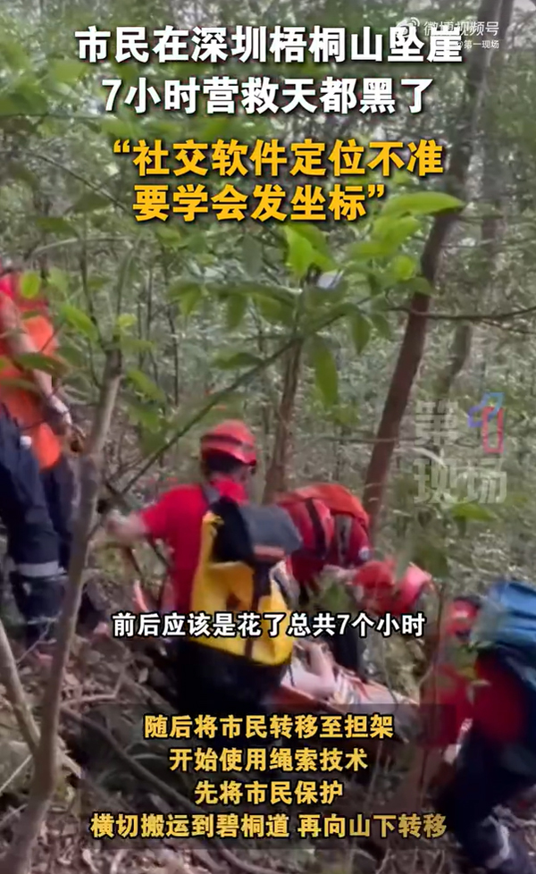 10 月 18 日中午,廣東深圳梧桐山發生驚險一幕,一名男子墜崖骨折,其家人因不確定具體位置報警求助。救援隊迅速組織執勤隊員上山,經 7 小時緊急救援,成功將男子移送至 120 并送往醫院。