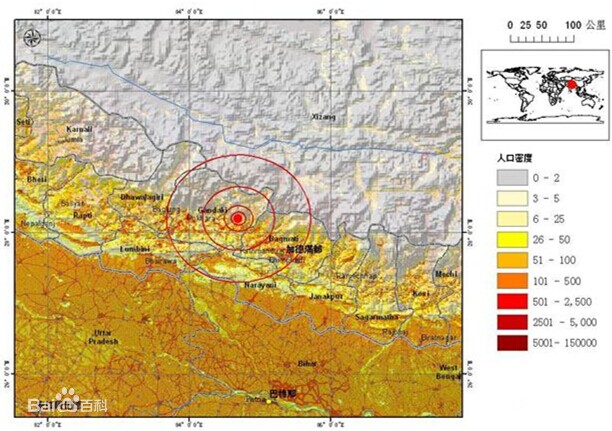 2015年4月25日14時11分,尼泊爾(北緯28.2度,東經84.7度)發生8.1級地震,震源深度20千米,余震31次。震中位于博克拉,最大烈度為X度,重烈度區從震中向東延伸。