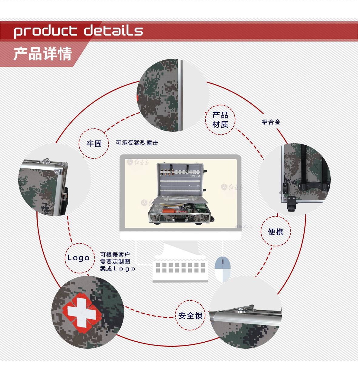 | 型號:RCB-6拉桿型急救箱 | 材質:鋁合金 | 顏色:迷彩 | ||||||