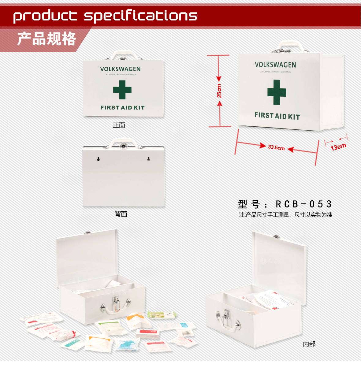 | 型號:RCB-053辦公工廠急救箱 | 外箱材質(zhì):鐵 | 顏色:白 | ||||||